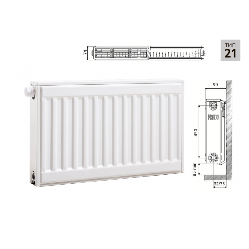 Стальной панельный радиатор PRADO Universal 21х500х500 /870 Вт/